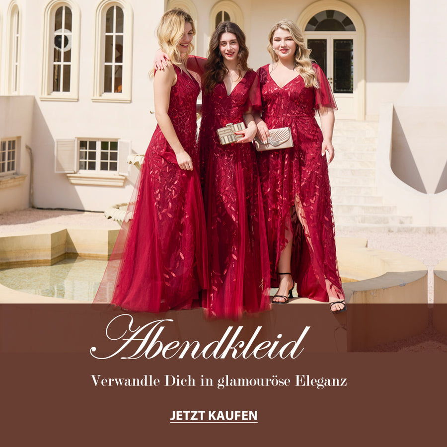 Willkommen bei Ever-Pretty, Ihrer Anlaufstelle für elegante und erschwingliche Kleider für jeden Anlass. Mit unzähligen Abendkleidern, Cocktailkleidern und vielem mehr liegen Sie mit einem Kleid aus unserer Kollektion genau richtig. Feiern Sie eine Hochzeit mit Stil oder setzen Sie bei Ihrer nächsten Soiree einen markanten und auffälligen Look in Szene. Egal, wohin Sie reisen, Ever-Pretty hat das perfekte Kleid für jeden Anlass. Unsere unglaubliche Auswahl an Kleidern umfasst jeden Stil, jede Farbe, jeden Druck und jede Silhouette, damit Sie den perfekten Look für Ihren individuellen Geschmack finden. Vervollständigen Sie Ihr Outfit mit Accessoires aus unserer Kollektion für den perfekten letzten Schliff. Das Beste am Einkaufen bei Ever-Pretty? Finden Sie ein wunderschönes Kleid, das zu Ihrem Budget und Ihrem persönlichen Stil passt. Kaufen Sie Ihren Lieblingslook zu einem noch günstigeren Preis – nur bei Ever-Pretty. Wir bei Ever-Pretty möchten, dass jede Frau sich rundum wohlfühlt und gut aussieht, besonders bei unvergesslichen Momenten und Anlässen. Feiern Sie einen Meilenstein oder Ihren nächsten großen Anlass mit einem Kleid, das so umwerfend und einzigartig ist wie Sie. Ein wunderschönes Abendkleid, Brautjungfernkleid oder Cocktailkleid sollte zu Ihrem Budget und Geschmack passen. Deshalb bieten wir eine unglaubliche Auswahl an erschwinglichen und trendigen Styles – damit Sie umwerfend aussehen, ohne Ihr Budget zu sprengen. Ob Sie Ihre Brautparty ausstatten oder sich für einen glamourösen Abend stylen möchten – bei Ever-Pretty finden Sie wunderschöne, hochwertige Modelle zu erschwinglichen Preisen. Wir helfen Ihnen, den Look zu kreieren, von dem Sie schon immer geträumt haben. Vom Abschlussball bis zur Hochzeit – wir wissen, dass Sie in unserer Kollektion für jeden Anlass den perfekten Look finden – nur bei Ever-Pretty. Und das Beste daran? Das Stöbern in unserer großen Auswahl an wunderschönen Kleidern war noch nie so einfach. Personalisieren Sie Ihr Einkaufserlebnis und finden Sie in Sekundenschnelle genau das, was Sie suchen. Filtern Sie unsere Kollektionen nach Anlass, Saumlänge, Ausschnitt, Farbe, Silhouette und mehr, um einen Look ganz nach Ihrem Geschmack zu kreieren. Sie sind sich nicht sicher, was Sie genau wollen? Wir sind sicher, dass Sie in unserer Auswahl Inspiration finden werden. Unser Sortiment wird ständig erweitert. Stöbern Sie also unbedingt in unseren Neuzugängen, um die neuesten Trends und Ergänzungen zu entdecken. Schauen Sie regelmäßig vorbei, um die neuesten Ergänzungen unserer Kollektion wunderschöner und erschwinglicher Abendkleider zu sehen!