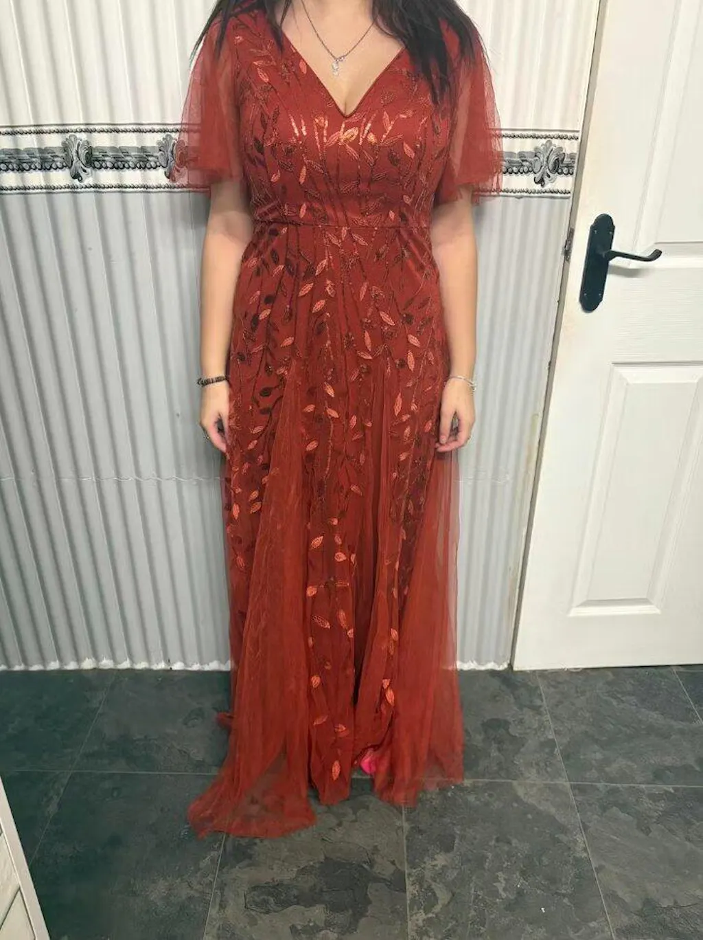 Dieses bodenlange A-Linien-Kleid mit tiefem V-Ausschnitt und funkelnden Details ist die perfekte Wahl für unvergessliche Anlässe wie Hochzeiten elegante Abendveranstaltungen oder glamouröse Partys Der schimmernde Paillettenbesatz verleiht dir einen atemberaubenden Auftritt während die fließende Silhouette deine feminine Seite betont Lass dich von diesem Kleid verzaubern und genieße die bewundernden Blicke