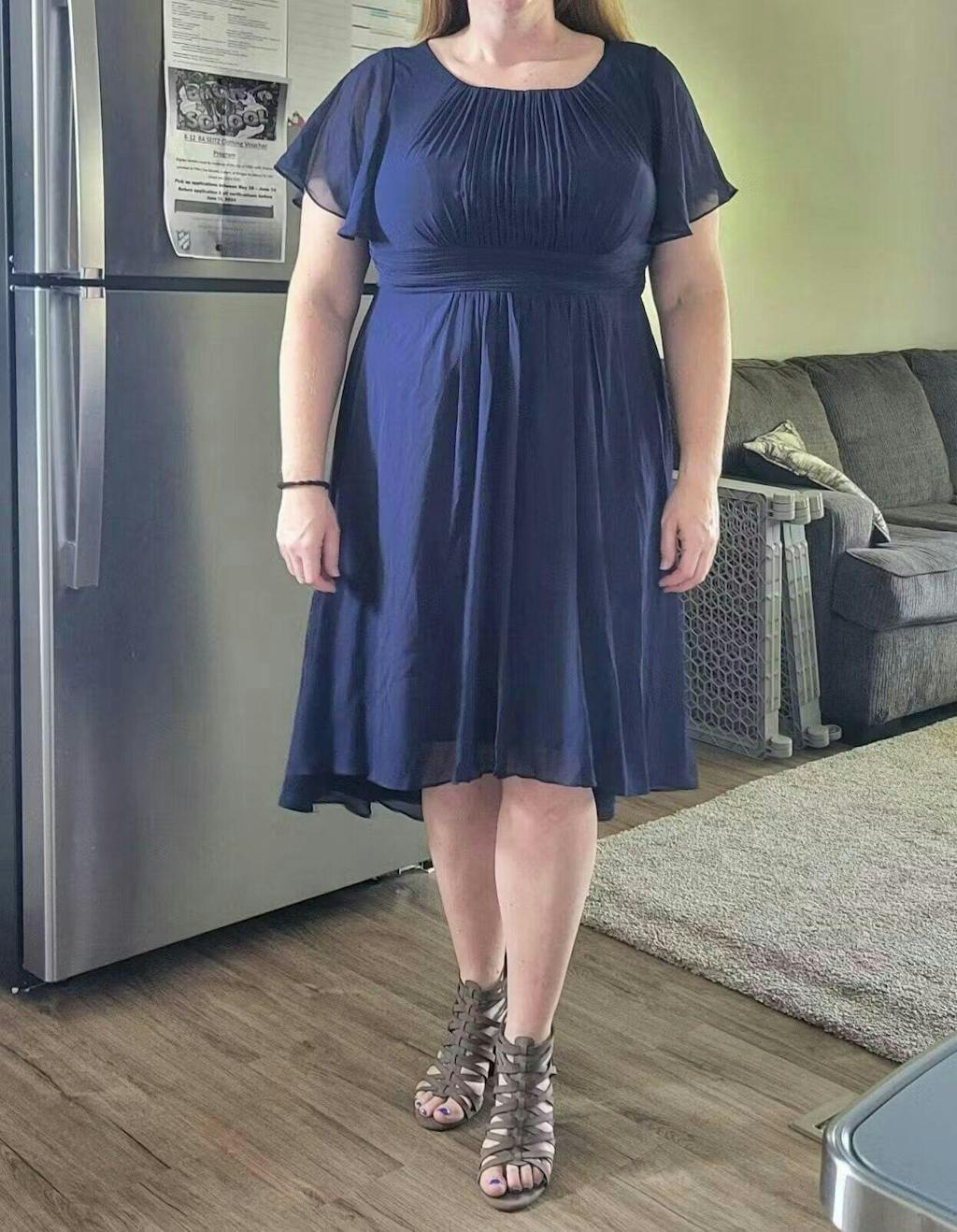 Suchen Sie das perfekte Kleid für die Hochzeit Ihrer Freunde oder einen festlichen Sommergartenempfang? Dieses knielange Hochzeitsgastkleid verbindet lässige Eleganz mit perfektem Sitz. Die klassische A-Linie schmeichelt jeder Figur, während der weiche Chiffonstoff angenehm leicht auf der Haut liegt. Der dezent-elegante runde Ausschnitt rundet das harmonische Gesamtbild ab.